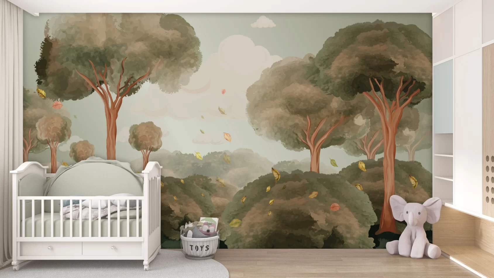 Tapeta dziecięca Pastelowe Drzewa – bajkowy las w pokoju dziecka