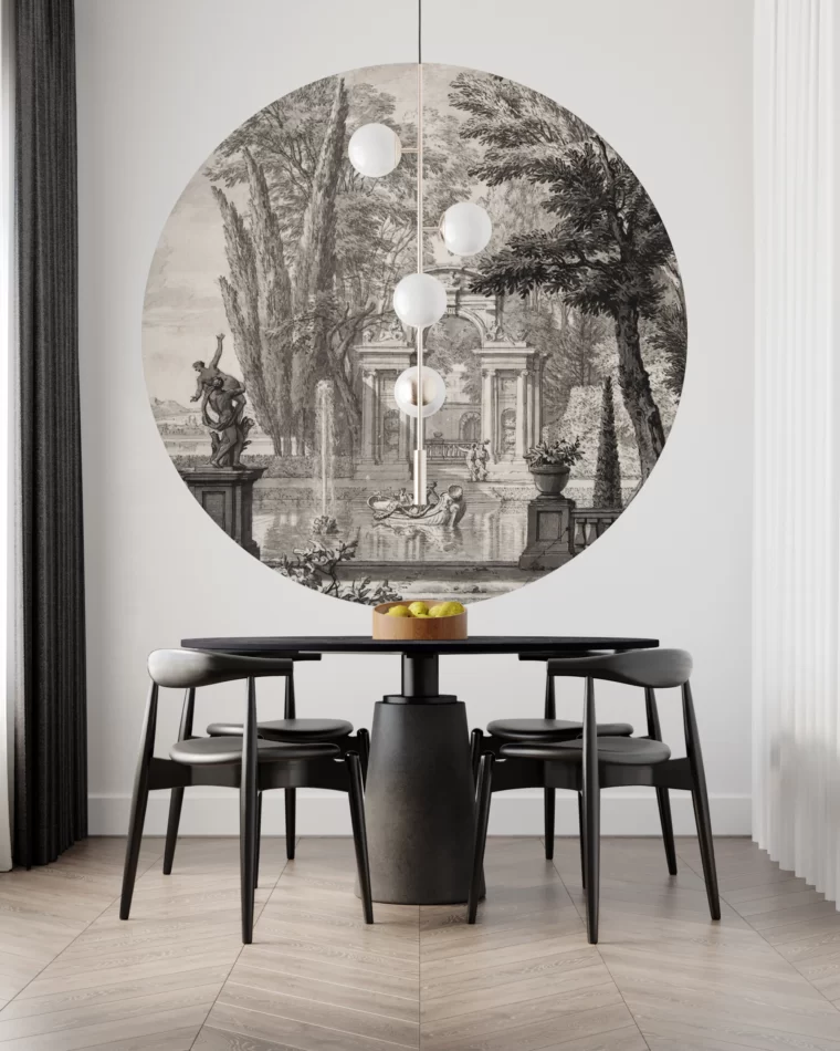 Okrągły kształt tapet DOTS o średnicy 130 cm nadaje wnętrzom nowoczesny i oryginalny charakter. Dzięki różnorodności wzorów, każdy znajdzie coś dla siebie – od delikatnych motywów roślinnych po bardziej wyraziste kompozycje. W szczególności dużym zainteresowaniem cieszą się DOTSy wykorzystujące wzory z naszej kolekcji metalizowanych obrazów.